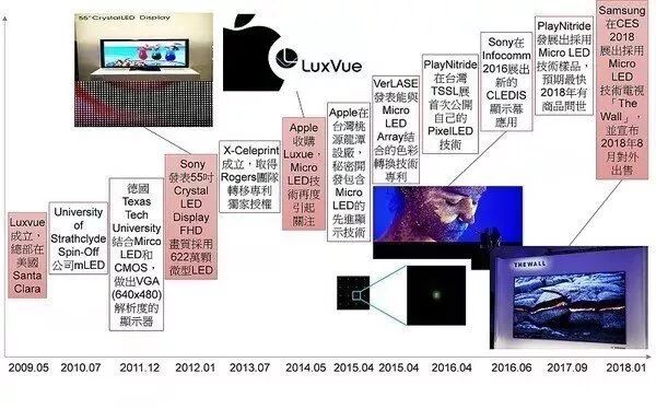 Apple发展Micro LED主要是为了减少对一家独大的Samsung OLED过度依赖,从2014年并购LuxVue后便开始积极布局,至今Apple在Micro LED领域已取得相当多的专利,已基本完成Micro LED的技术储备。