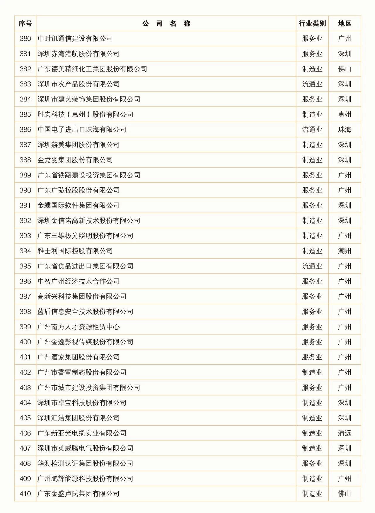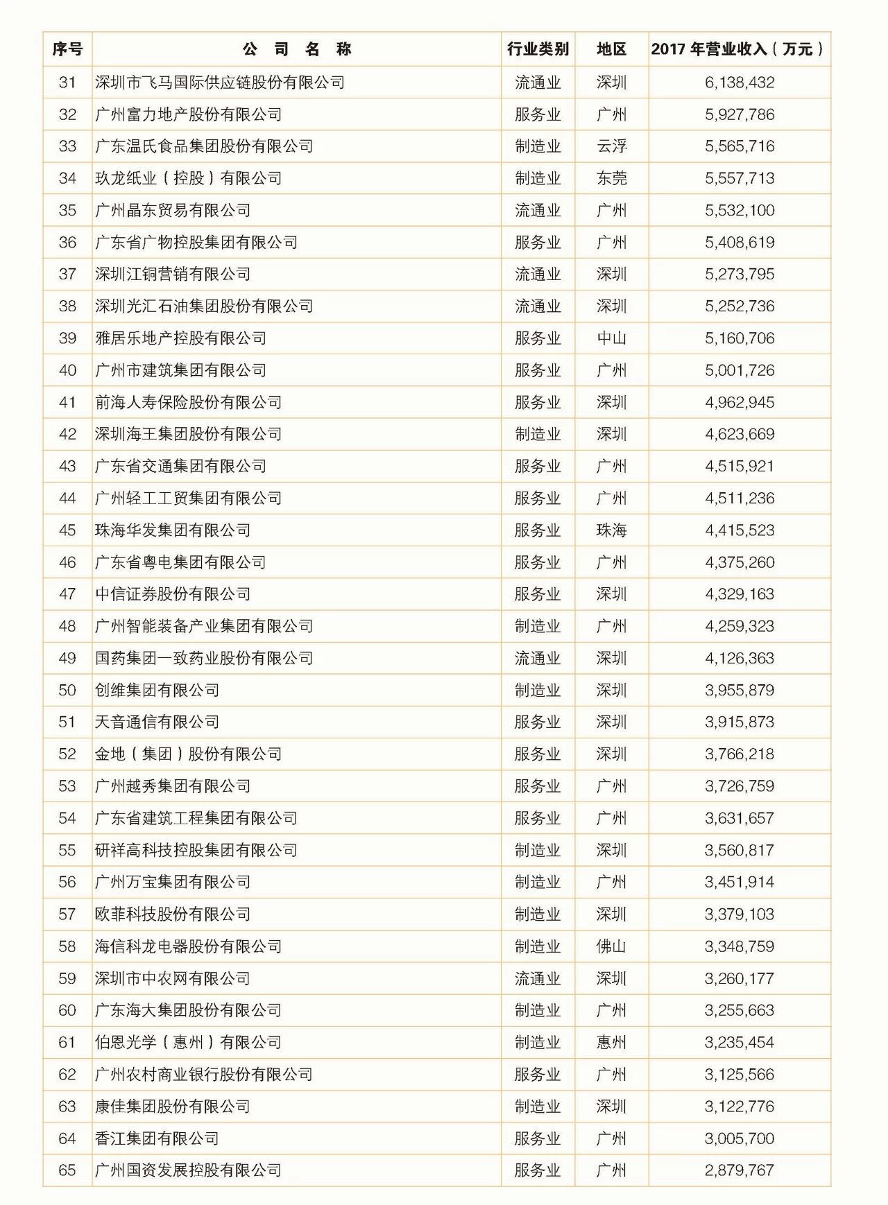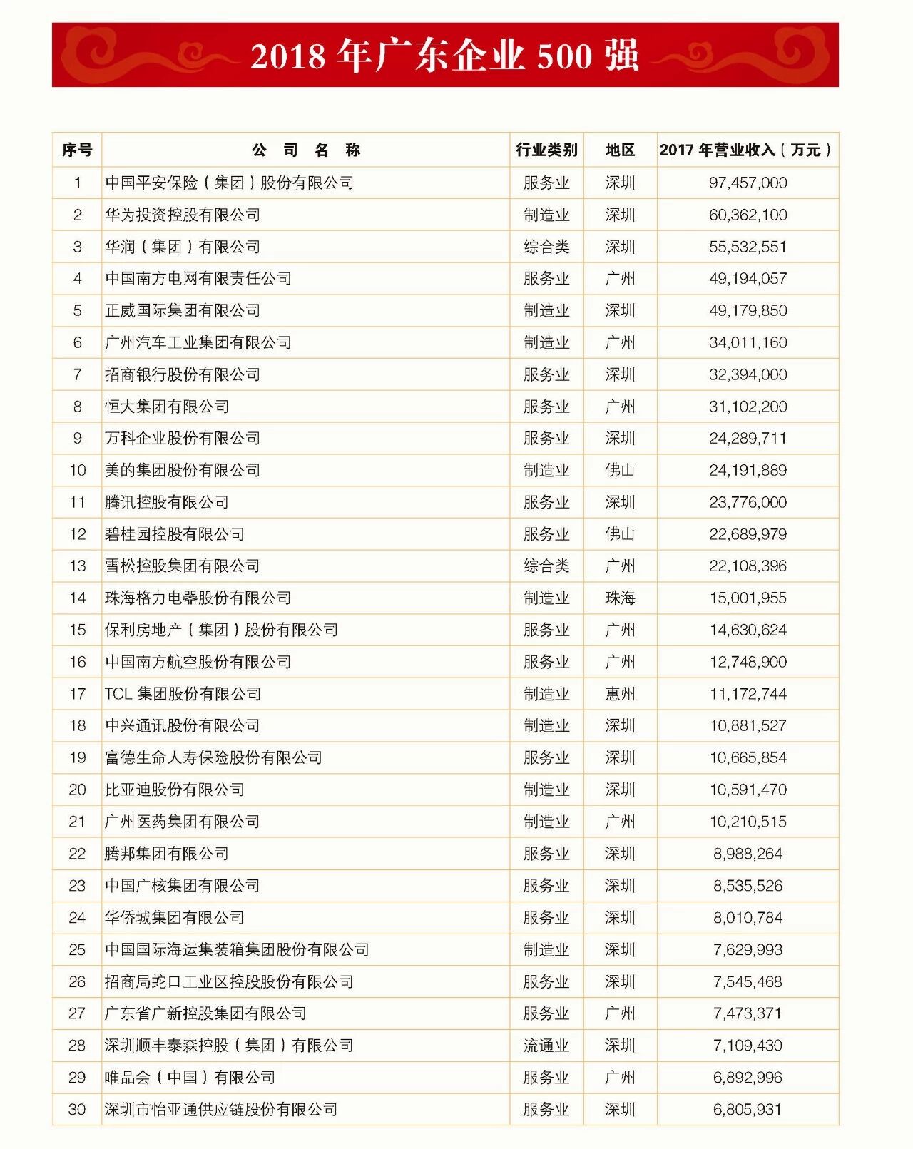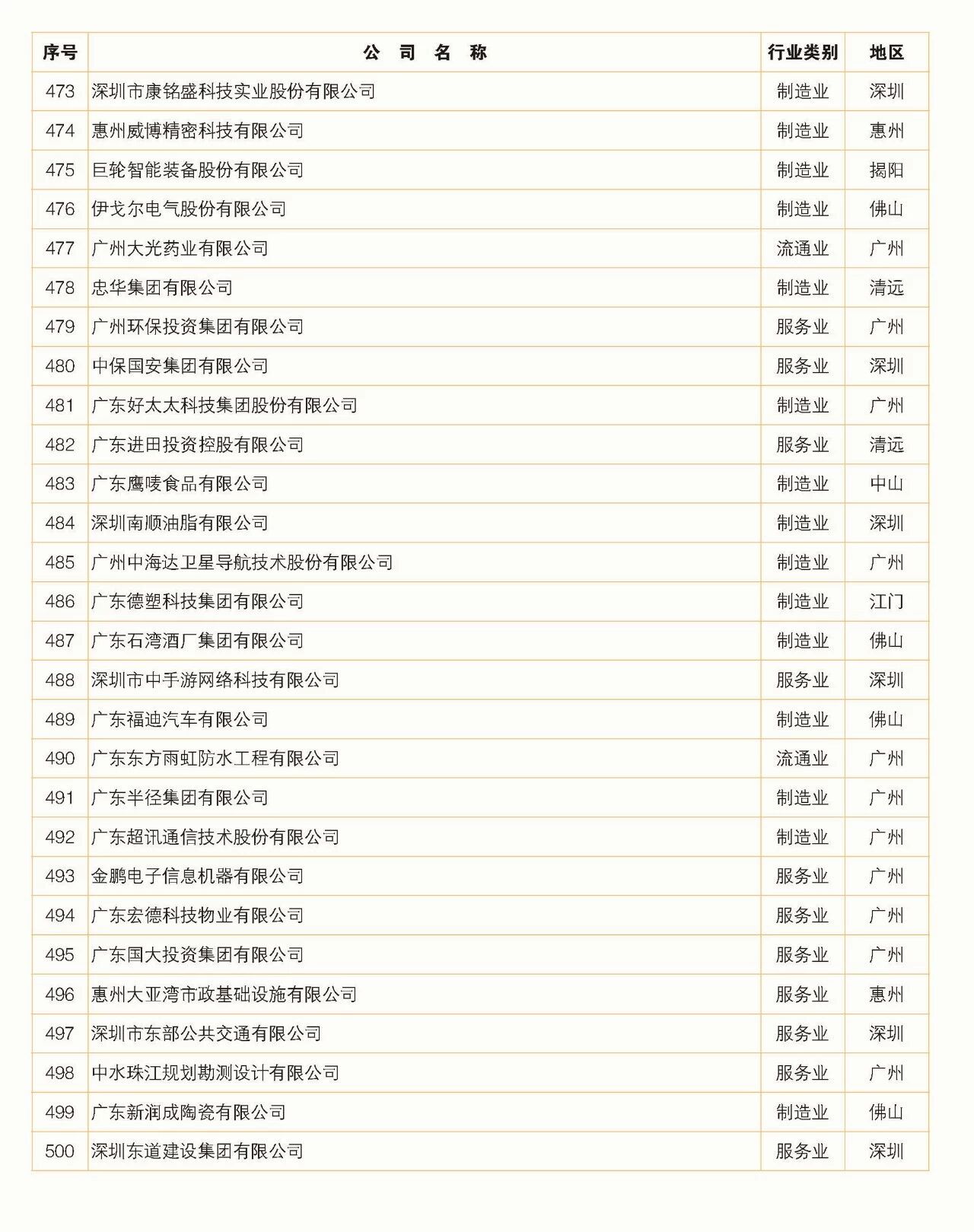 2018年广东省500强企业名单