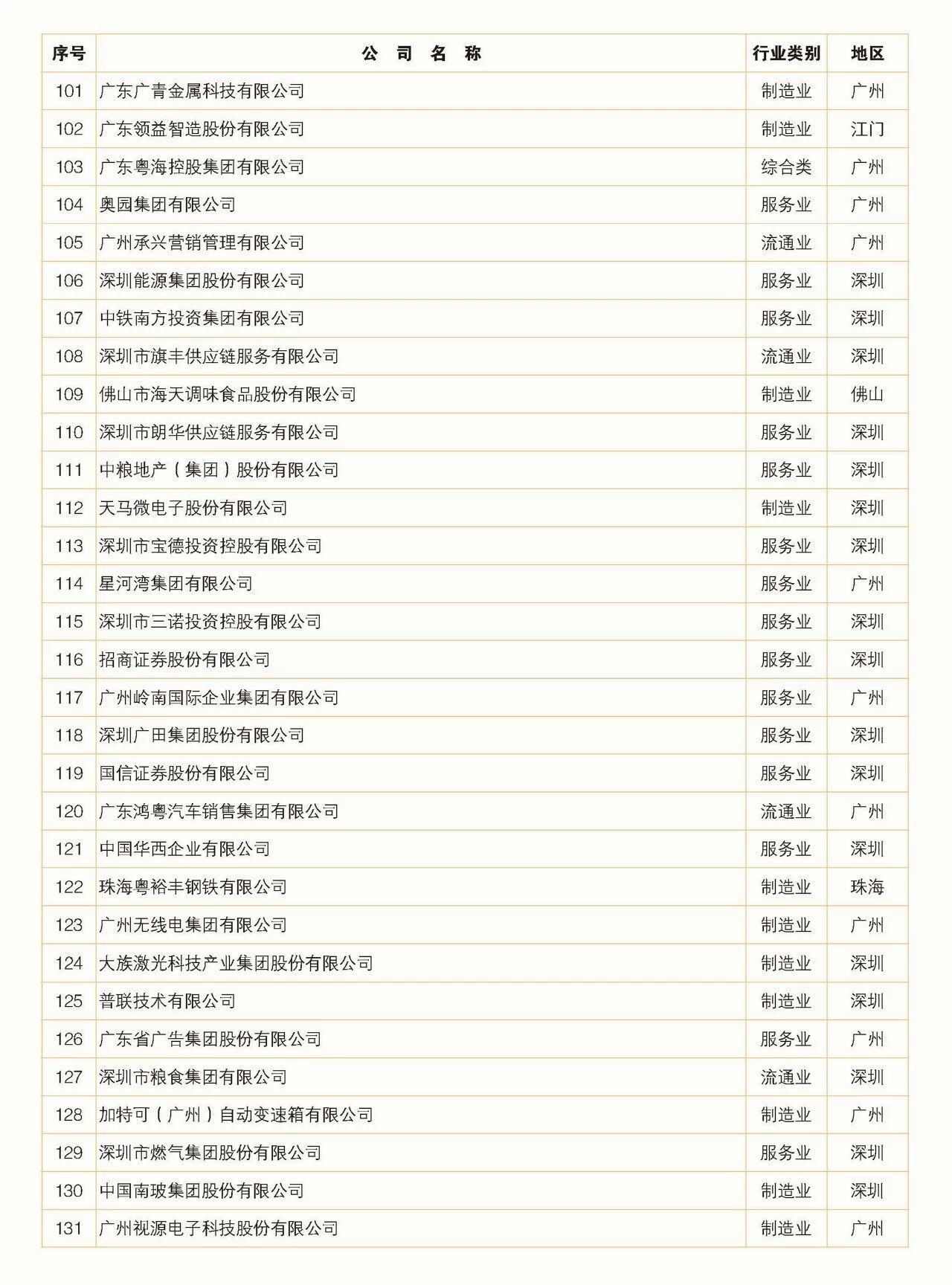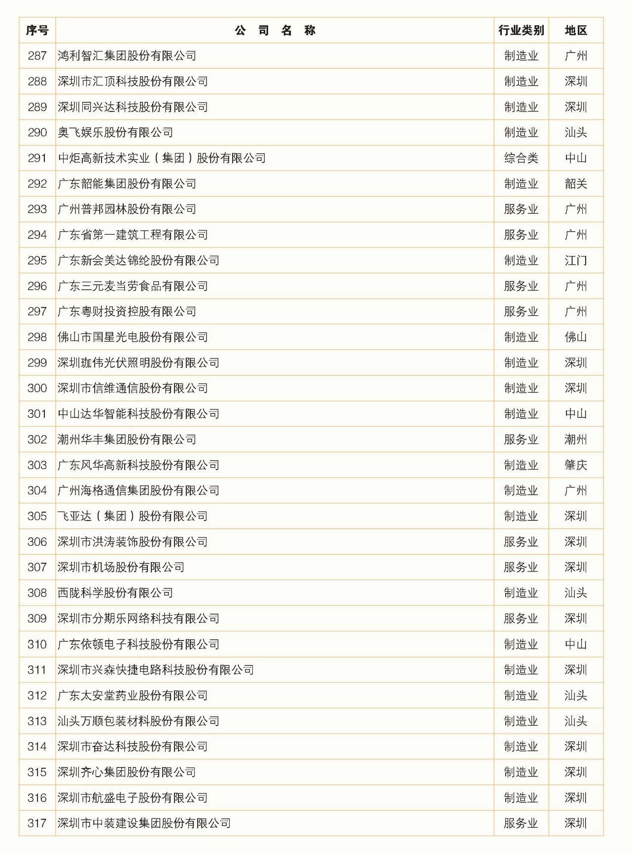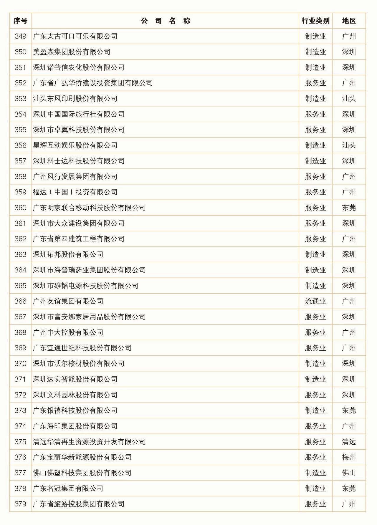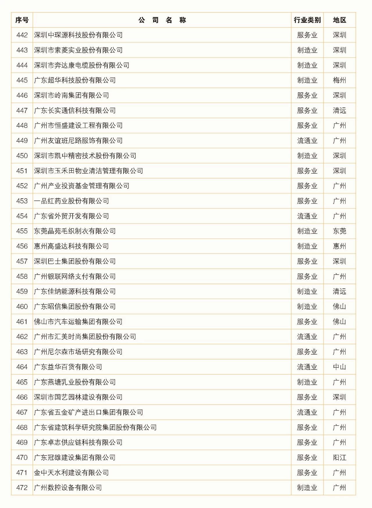 2018年广东省500强企业名单