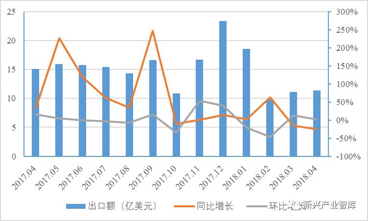 图1:2017.04-2018.04广东LED照明产品出口变化