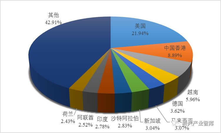 从出口国家来看,美国仍然是广东省最大的出口市场,2018年4月,广东出口美国LED照明产品2.49亿美元,同比下降32.08%,占比21.94%;香港排名第二,出口额为1.01亿美元,同比下滑5.99%,占比8.89%;本月广东对越南LED照明出口6776.69万美元,同比增长51.72%,超过德国、马来西亚、新加坡等地区成为广东第三大LED产品出口市场。广东对前十市场的出口额均超过2000万美元,合计6.49亿美元,占四月广东LED产品出口总额的57.09%。