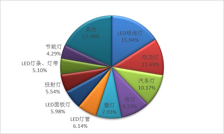图1:2018年上半年我国LED照明产品出口构成